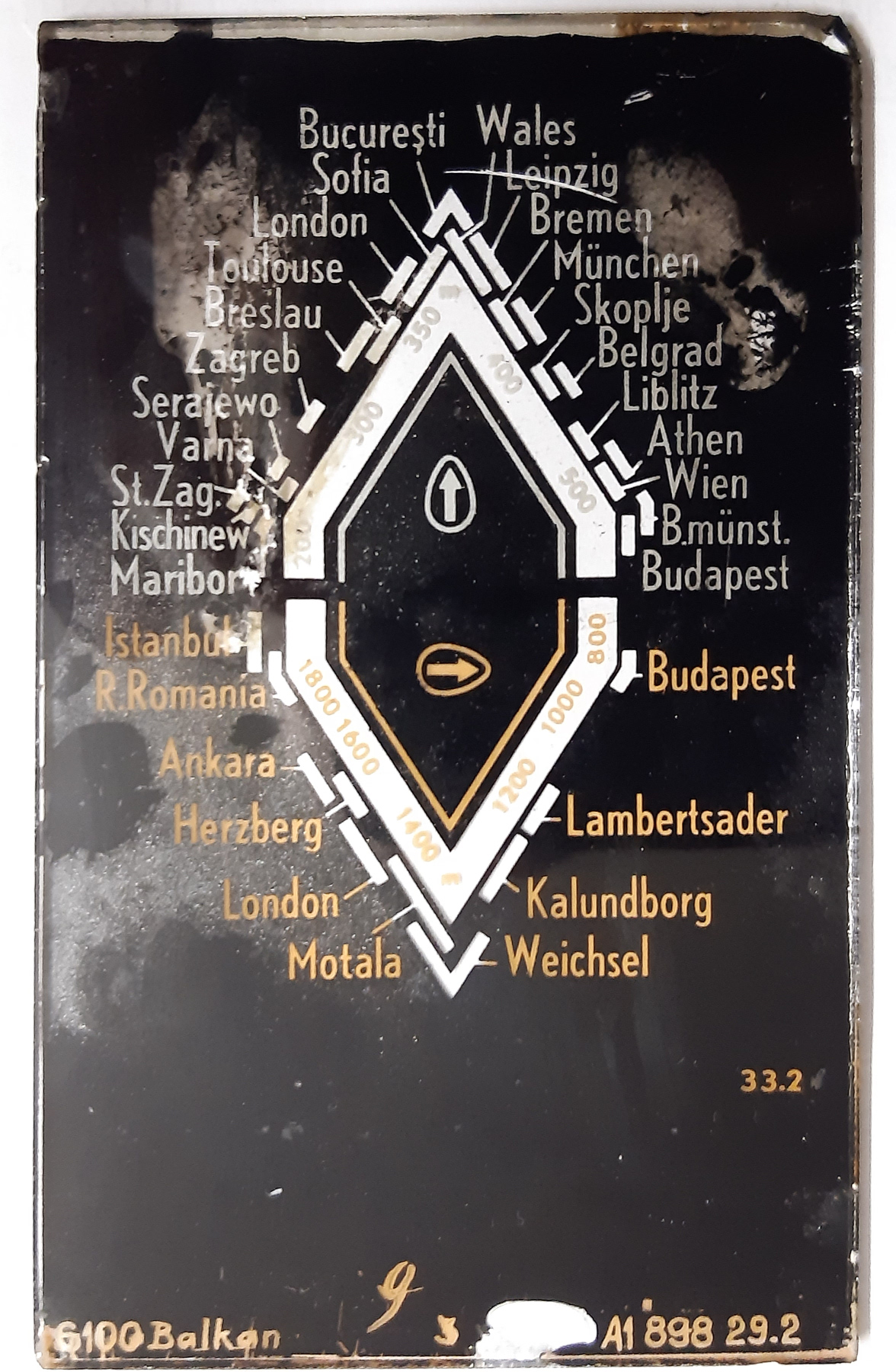 Nach Verheijen sind Geräte mit Skalen für den Bestimmungsort Finnland (Ausführung 04) oder Südosteuropa (Ausführung 01, Balkan) am weitesten verbreitet und befinden sich hauptsächlich in ausländischen Sammlungen. Die Skalennummern befinden sich auf dem unteren Skalenrand, von außen nicht sichtbar. Die Skala unseres Geräts nennt sich "S100-Balkan" mit der Codenummer A1 898 29.2 und dem Datumcode 33.2 für Woche 32 in 1942.